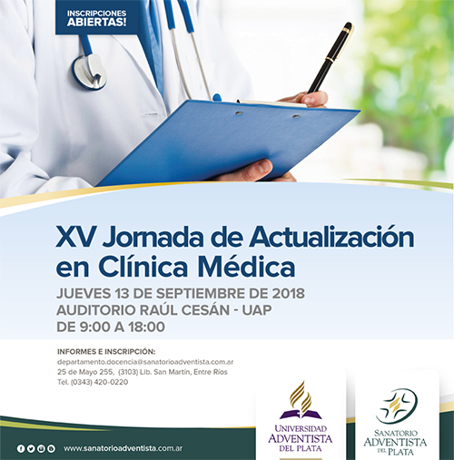 22 agosto 2018 XV Jornada de Actualización en Clínica Médica El Sanatorio Adventista del Plata (SAP) y la Secretaría de Extensión de la Facultad de Ciencias de la Salud de la Universidad Adventista delSeguir leyendo...